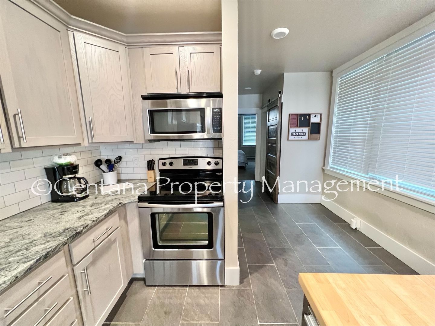 Welcome to our furnished one-bedroom apartment in the heart of Butte, MT, where month-to-month leases are available for your convenience. This apartment offers a blend of comfort, style, and convenience. It comes fully furnished with a modern, updated kitchen equipped with stainless steel appliances. The unit also includes a stackable washer/dryer, ensuring your laundry needs are met without leaving the comfort of your home. The apartment boasts gorgeous wood flooring and an efficient heater to keep you warm during the colder months. The cozy bedroom is a perfect retreat after a long day. The property offers off-street parking with additional parking up front, ensuring ample space for your vehicle. The location is unbeatable, with proximity to all that Uptown Butte has to offer. Enjoy the gorgeous views and take advantage of the nearby walking trails for a breath of fresh air. Experience the perfect blend of functionality and style in this apartment, designed for a comfortable and convenient lifestyle.